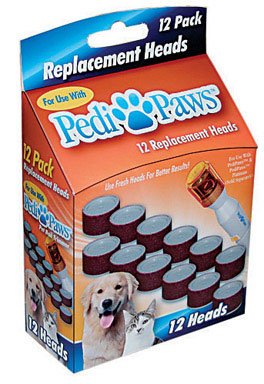 Pedi Paws Replacement Heads (12 Pack) For use with Pedi Paws Pet Nail Trimmer. As you know the secret to Pedi Paws amazing results is it's high quality filing head. This precision engineered emery head gives your pet's nails a smooth and gentle trimming but like any disposable emery files, after several uses this filing head will begin to wear and you'll need to order replacement heads. So to insure that the emery filing head will ALWAYS provides the best results- we recommend custom designed replacement heads for your Pedi Paw. The professional quality emery heads are specifically engineered and provide a custom designed fit for your Pedi Paws. Includes: 12 x Replacement Heads