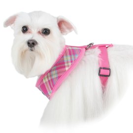 This product is perfect for our Rat Terrier. Easy to put on and take off, puts no pressure on the do yet keeps her secure, and everyone loves the snappy pink plaid design.
