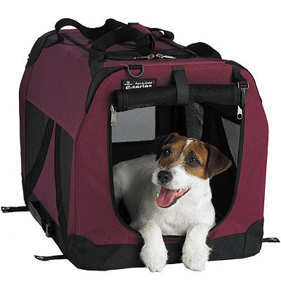 This crate is convenient, roomy for my jack russell terrier. It is very portable, easy and light to carry and my dog loves it. I would not recommend it for a dog that chews or scratches, since the front is mesh. I'm very pleased with this purchase.